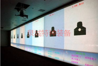 模擬影像射擊區(qū),由矩陣操作系統(tǒng)、影像攝錄系統(tǒng)彈點(diǎn)采集系統(tǒng)、激光發(fā)射系統(tǒng)、橡膠大屏幕等構(gòu)成??蛇M(jìn)行特勤和反劫機(jī)分隊(duì)訓(xùn)練大綱規(guī)定的射擊課目訓(xùn)練、幻燈圖片場(chǎng)景射擊訓(xùn)練、影像場(chǎng)景射擊訓(xùn)練、“紅藍(lán)對(duì)抗”訓(xùn)練。